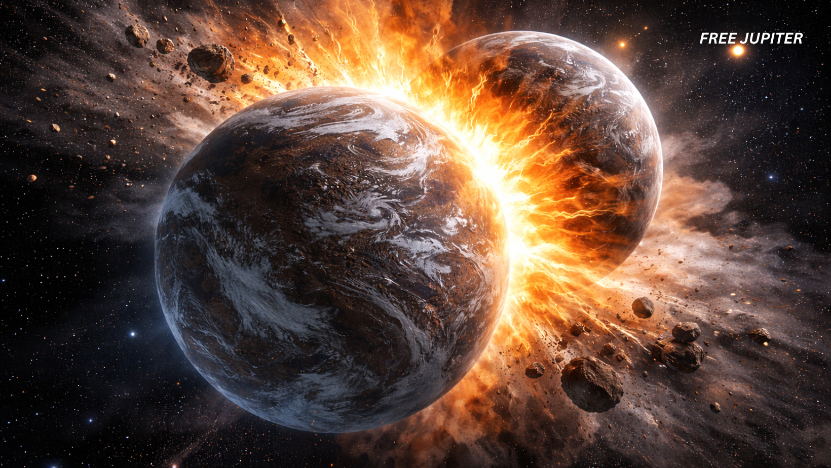 Such intense heat does not appear without a powerful cause. A collision between two planets would generate exactly this kind of energy. It would release enormous amounts of heat as the bodies slammed into each other, breaking apart and scattering material into space.